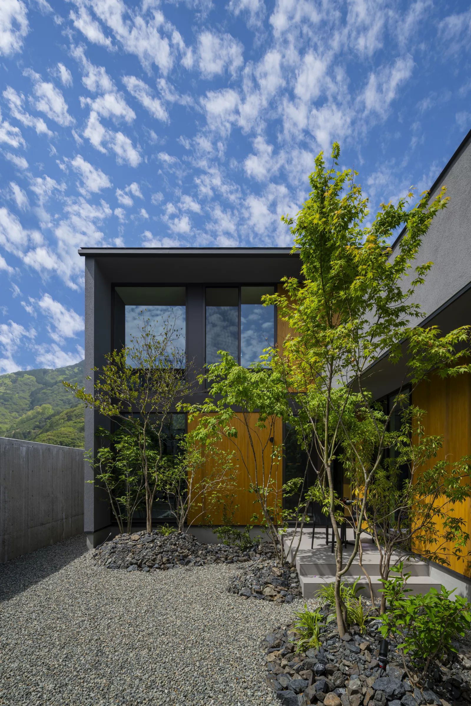 永平寺町松岡西野中 黒い焼杉が佇む、緑と暮らす平屋