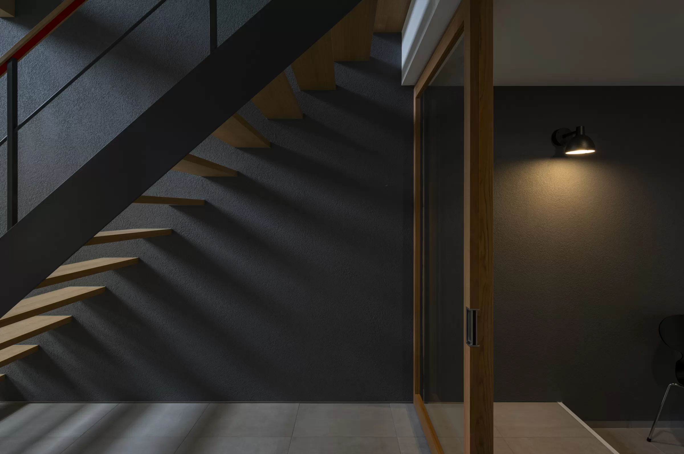 福井市灯明寺 木漏れ日誘う、グレー壁の家