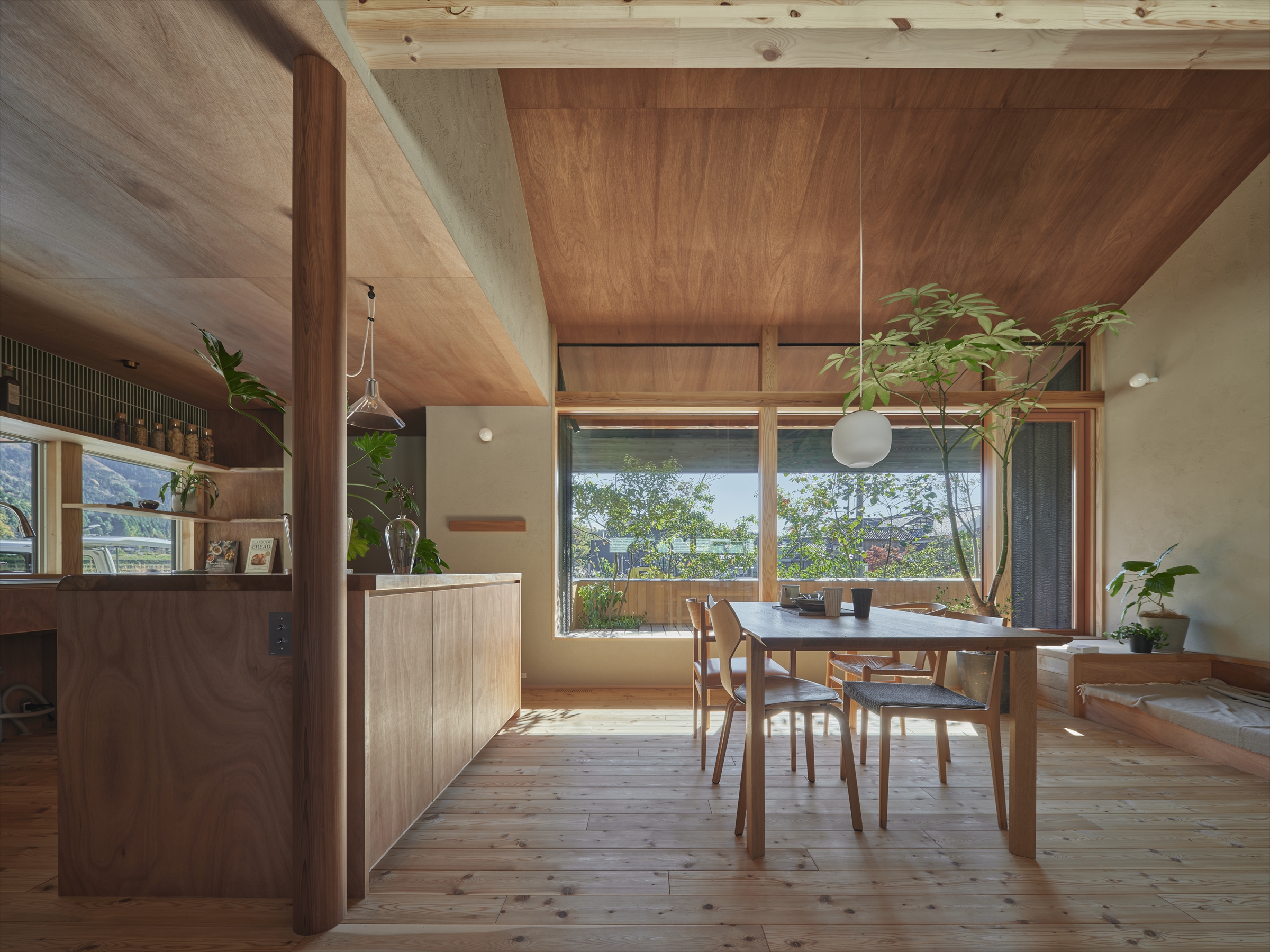 ・LDK全体を包む、緑のある落ち着いた眺め